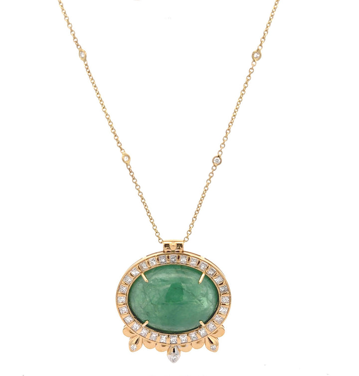 Inspired by the enduring strength and delicate beauty of a woman, this pendant is a true emblem of empowerment. The serene green fluorite, vibrant and full of life, symbolizes the nurturing spirit and quiet determination that allows her to flourish. It is elegantly framed by a cascade of diamonds, representing the countless facets of a woman's strength and the unwavering support that lifts her higher. Crafted in lustrous yellow gold, this piece is more than just an accessory; it's a wearable testament to a journey of self-discovery and the blossoming of remarkable power and grace.
